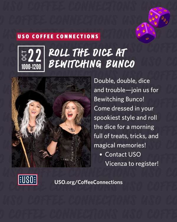 Take a break and refuel at the USO Troop Time every Thursday from 11:30am-1:00pm at the USO Vicenza Center.