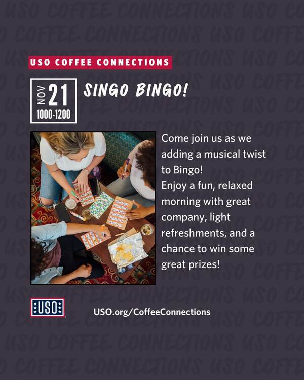 USO Souda Bay is hosting Coffee Connections! ☕✨ Join us for a warm cup of coffee, great conversation, and the chance to connect with other spouses in our community. Whether you’re new to the area or have been here a while, this is the perfect opport…