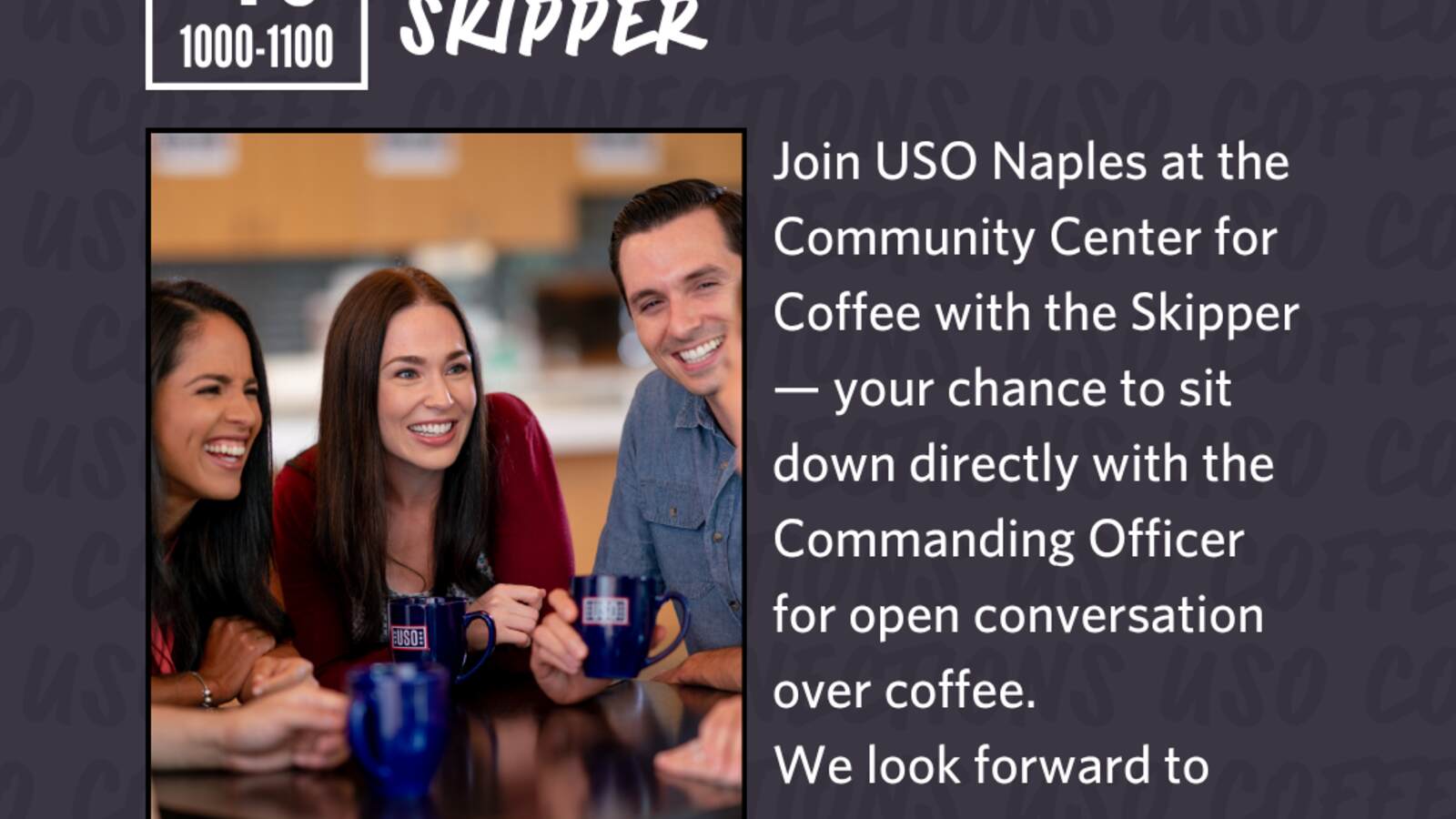 Coffee with the Skipper gives NSA residents an opportunity to meet directly with the base Commanding Officer in a relaxed setting. Attendees are encouraged to ask questions, share concerns, and learn about current base initiative. It’s a great opportunity to engage with leadership and stay informed about what’s happening on the installation.